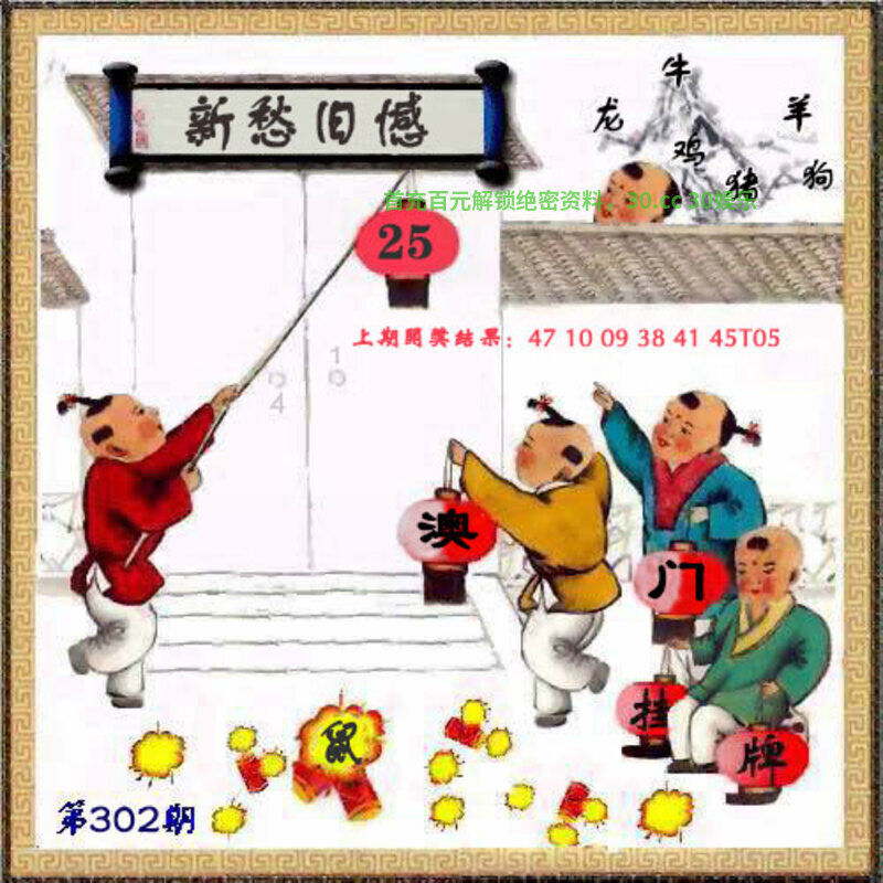 | 302期挂牌《新愁旧憾》 解释:因现状引发的烦恼与过往遗留的悔恨交织的复杂心境 解:交织的复杂心境。解虎龙兔猴马猪,挂:25爆:鼠 七肖:鼠马虎龙兔猪牛 |